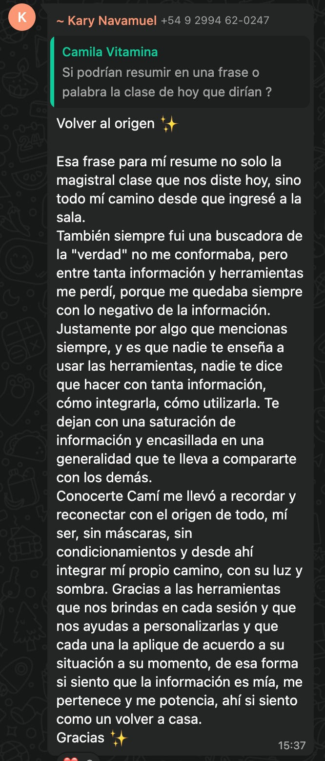 Las clases de la Sala Mujer Vitamina es una experiencia profunda de autoconocimiento y expansión. Te ayuda a liberar el ruido mental, reconectar con tu poder y encender esa versión más segura, radiante y consciente de vos.